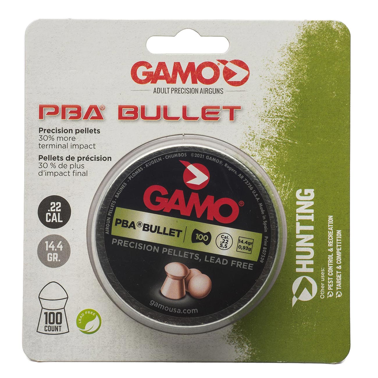 Gamo PBA .22 Cal. Bullet Pellets - Lead Free (100 per Tin)